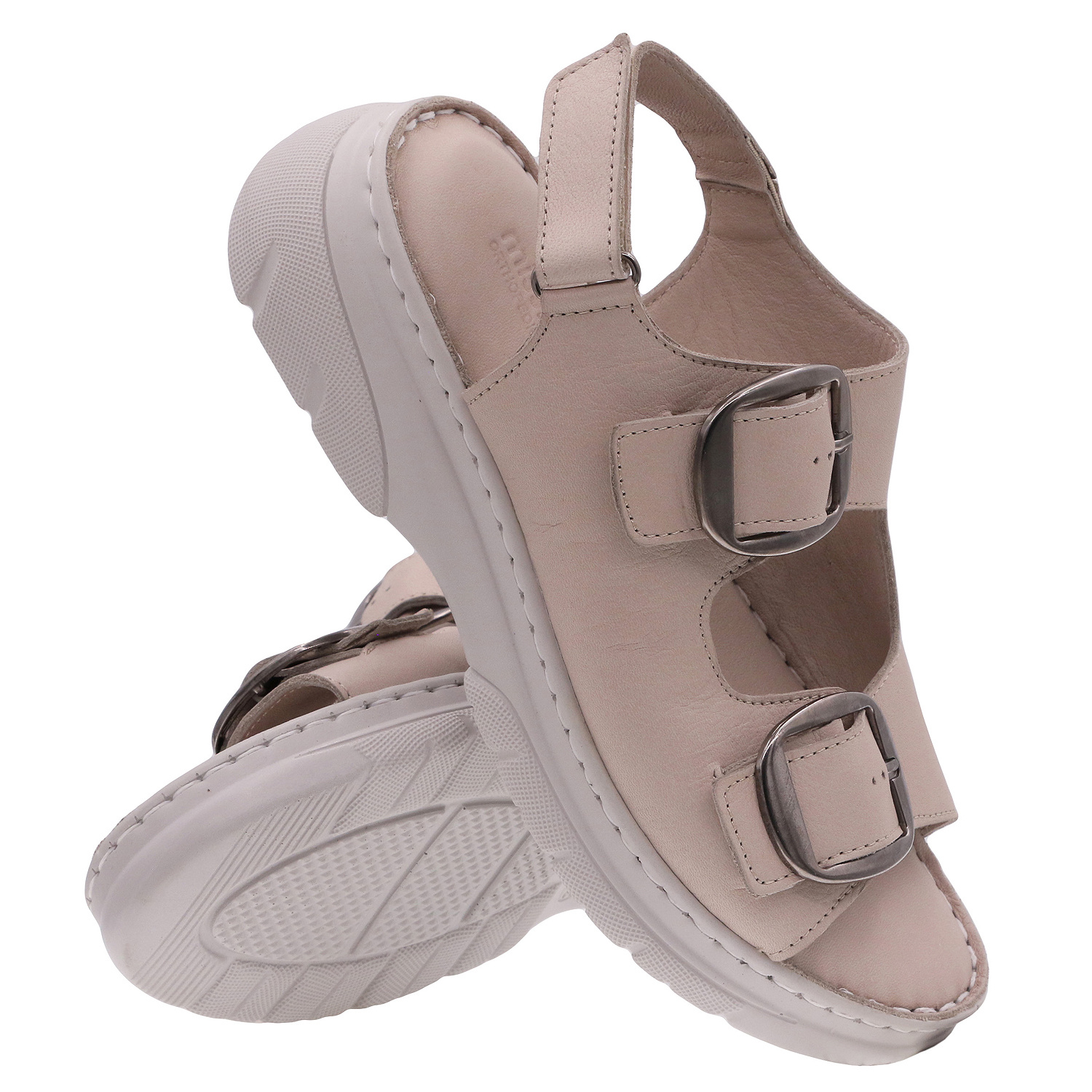 MISSMAMA - obuwie premium. Obuwie damskie, sandały produkcji tureckiej. Obuwie o charakterze rekreacyjnym wykonane z najwyższej jakości skór naturalnych. Wnętrze wyłożone miękką skórą. Wkładka wewnętrzna profilowana, dostosowana do kształtu anatomicznego stopy, wykonana z miękkiej, naturalnej skóry. Spód dwuwarstwowy wykonany z lekkiego i elastycznego tworzywa - poliuretanu - zapewnia sprężystość i bardzo dobre przenoszenie obciążeń na podłoże. Użyte materiały i zastosowana technologia zapewnia wysoki komfort użytkowania i wygodę.