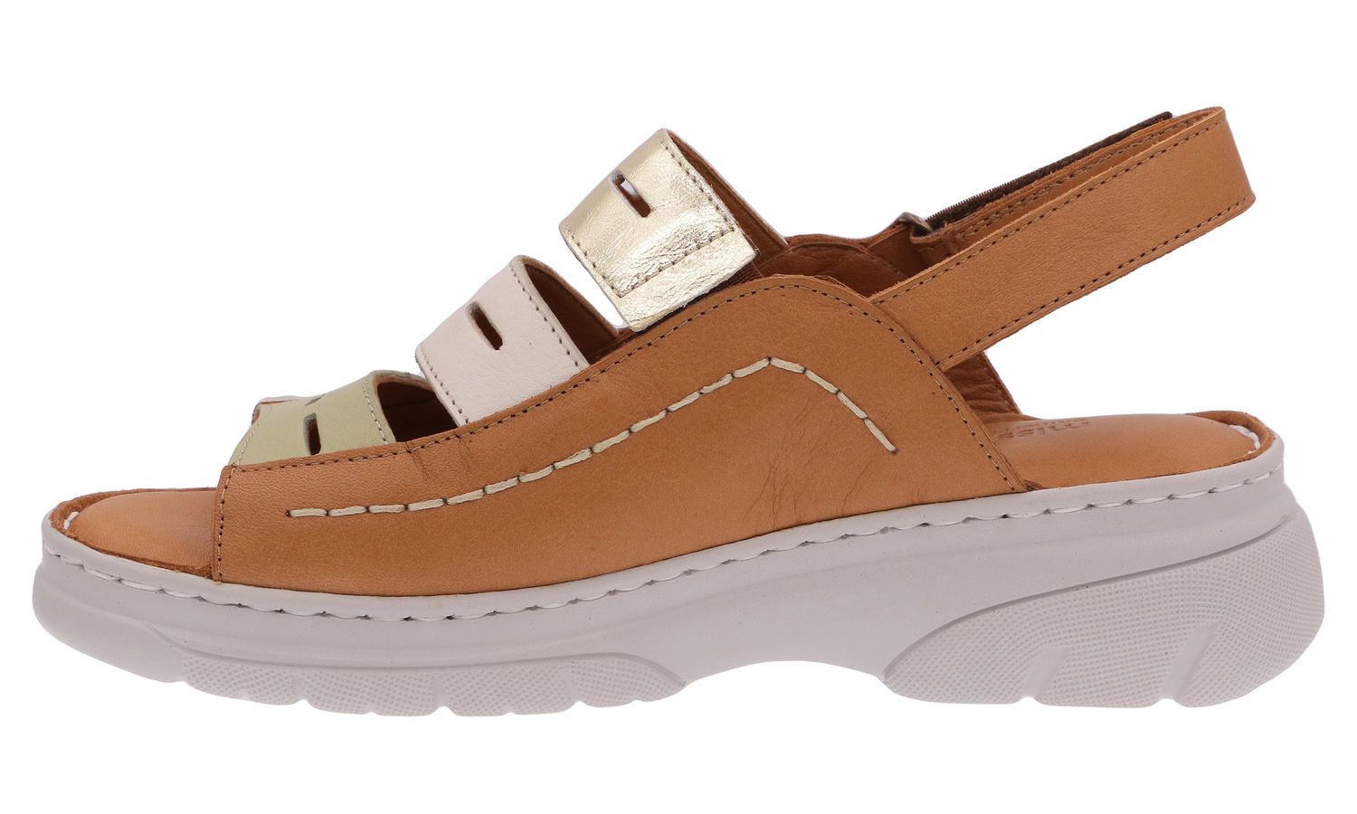 MISSMAMA - obuwie premium. Obuwie damskie, sandały produkcji tureckiej. Obuwie o charakterze rekreacyjnym wykonane z najwyższej jakości skór naturalnych. Wnętrze wyłożone miękką skórą. Wkładka wewnętrzna profilowana, dostosowana do kształtu anatomicznego stopy, wykonana z miękkiej, naturalnej skóry. Spód dwuwarstwowy wykonany z lekkiego i elastycznego tworzywa - poliuretanu - zapewnia sprężystość i bardzo dobre przenoszenie obciążeń na podłoże. Użyte materiały i zastosowana technologia zapewnia wysoki komfort użytkowania i wygodę.
