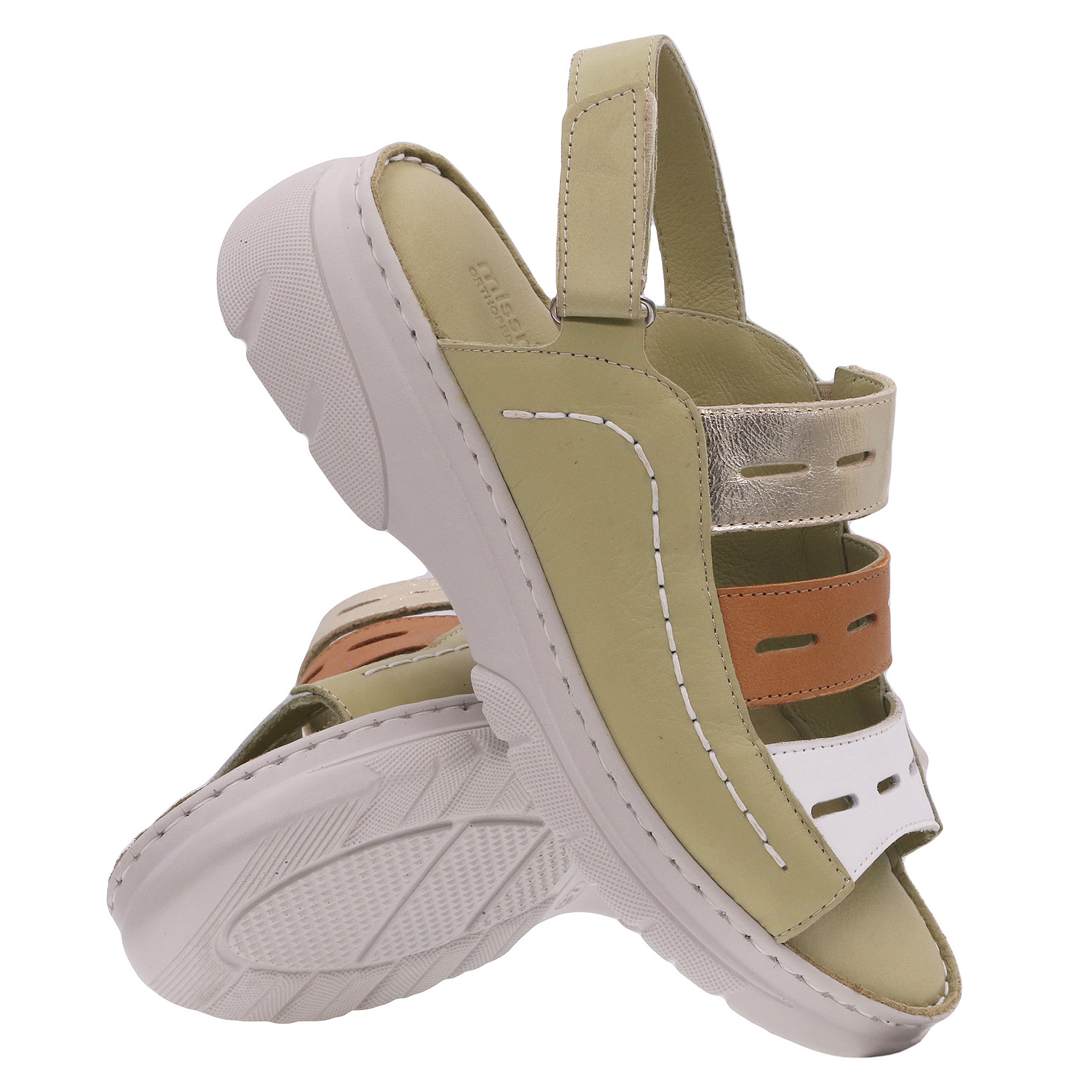 MISSMAMA - obuwie premium. Obuwie damskie, sandały produkcji tureckiej. Obuwie o charakterze rekreacyjnym wykonane z najwyższej jakości skór naturalnych. Wnętrze wyłożone miękką skórą. Wkładka wewnętrzna profilowana, dostosowana do kształtu anatomicznego stopy, wykonana z miękkiej, naturalnej skóry. Spód dwuwarstwowy wykonany z lekkiego i elastycznego tworzywa - poliuretanu - zapewnia sprężystość i bardzo dobre przenoszenie obciążeń na podłoże. Użyte materiały i zastosowana technologia zapewnia wysoki komfort użytkowania i wygodę.
