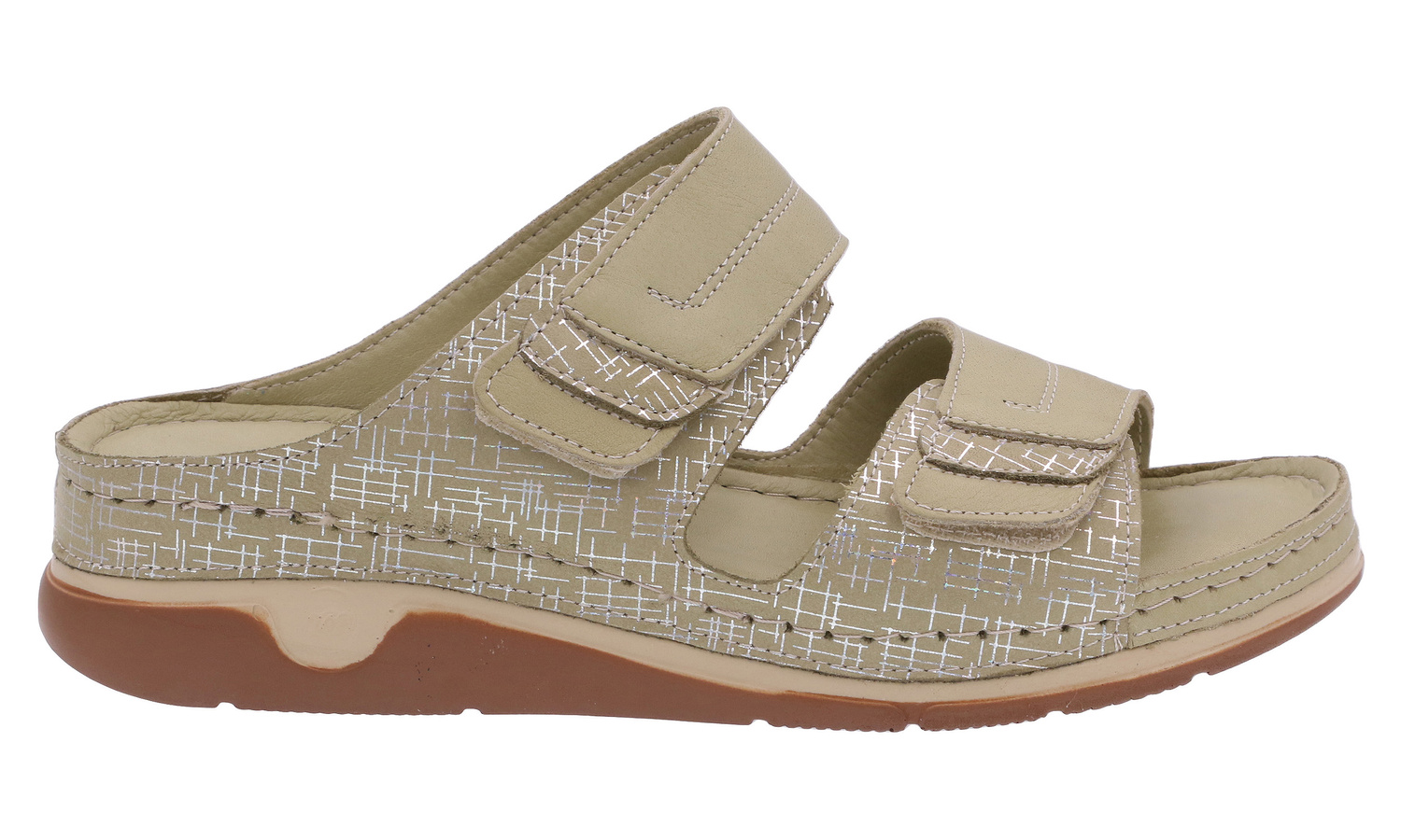 MISSMAMA - obuwie premium. Obuwie damskie, klapki profilaktyczne produkcji tureckiej. Obuwie o charakterze rekreacyjnym wykonane z najwyższej jakości skór naturalnych. Wnętrze wyłożone miękką skórą. Wkładka wewnętrzna profilowana, dostosowana do kształtu anatomicznego stopy, wykonana z miękkiej, naturalnej skóry. Spód dwuwarstwowy wykonany z lekkiego i elastycznego tworzywa - poliuretanu - zapewnia sprężystość i bardzo dobre przenoszenie obciążeń na podłoże. Użyte materiały i zastosowana technologia zapewnia wysoki komfort użytkowania i wygodę.