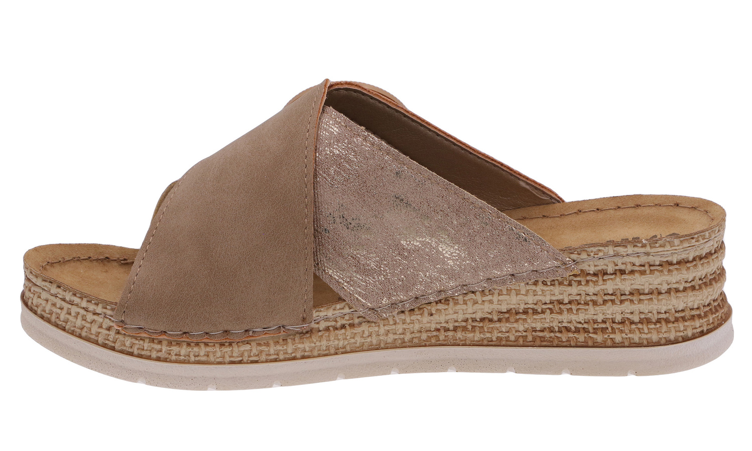 INBLU polskie obuwie. Obuwie damskie, klapki IN-RV-12 produkcji polskiej. Obuwie o charakterze rekreacyjnym wykonane z najwyższej jakości tworzywa skóropodobnego. Wnętrze wyłożone miękkim tworzywem dobrze przepuszczającym powietrze. Wkładka wewnętrzna "COMFORT ANATOMICO" profilowana, dostosowana do kształtu anatomicznego stopy, wykonana z naturalnej skóry. Spód dwuwarstwowy wykonany z lekkiego i elastycznego tworzywa - poliuretanu - zapewnia sprężystość i bardzo dobre przenoszenie obciążeń na podłoże. Użyte materiały i zastosowana technologia zapewnia wysoki komfort użytkowania i wygodę.