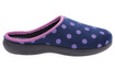 INBLU sklep - polskie obuwie. Kapcie damskie obuwie domowe, pantofle domowe IN-EC-90 produkcji polskiej o charakterze rekreacyjnym wykonane z ekologicznego materiału tekstylnego. Wnętrze wyłożone miękkim materiałem tekstylnym o dużej zawartości bawełny, dobrze przepuszcza powietrze i zapewnia wysoki komfort. Wkładka wewnętrzna profilowana, wykonana z naturalnego materiału tekstylnego. Spód plastycznie profilowany wykonany z lekkiego i elastycznego tworzywa - poliuretanu idealnie dopasowany do kształtu anatomicznego stopy, zapewnia sprężystość i bardzo dobre przenoszenie obciążeń na podłoże. Użyte materiały i zastosowana technologia zapewnia wysoki komfort użytkowania i wygodę. Obuwie domowe INBLU jest szczególnie polecane dla osób o stopach wrażliwych lub alergicznych.