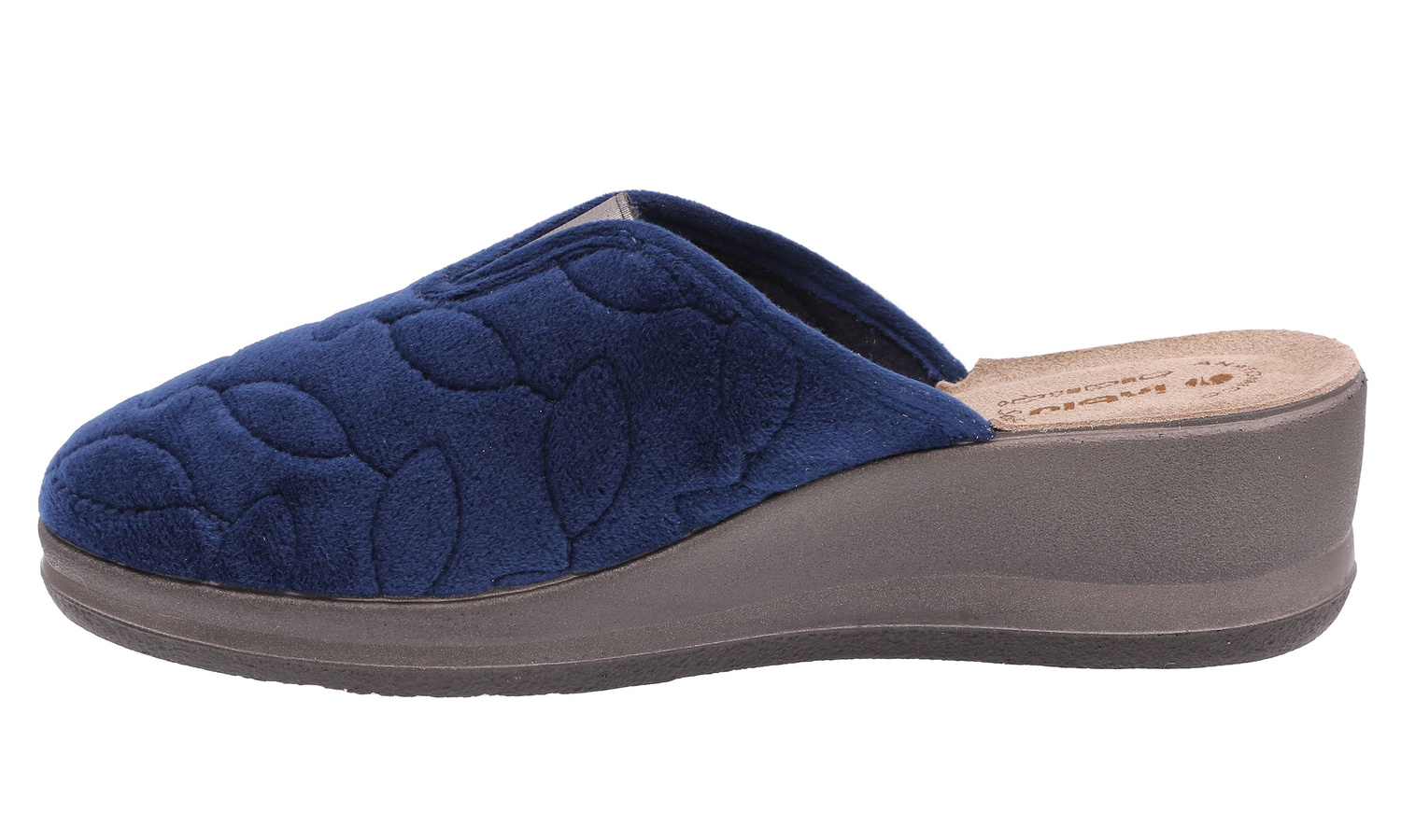 INBLU sklep - polskie obuwie. Kapcie damskie obuwie domowe IN-GI-24 produkcji polskiej o charakterze rekreacyjnym wykonane z materiału tekstylnego. Wnętrze wyłożone miękkim materiałem tekstylnym o dużej zawartości bawełny, dobrze przepuszcza powietrze i zapewnia wysoki komfort. Wkładka wewnętrzna profilowana ze skóry ekologicznej. Spód plastycznie profilowany wykonany z lekkiego i elastycznego tworzywa - poliuretanu idealnie dopasowany do kształtu anatomicznego stopy, zapewnia sprężystość i bardzo dobre przenoszenie obciążeń na podłoże. Użyte materiały i zastosowana technologia zapewnia wysoki komfort użytkowania i wygodę. Obuwie domowe INBLU jest szczególnie polecane dla osób o stopach wrażliwych lub alergicznych.