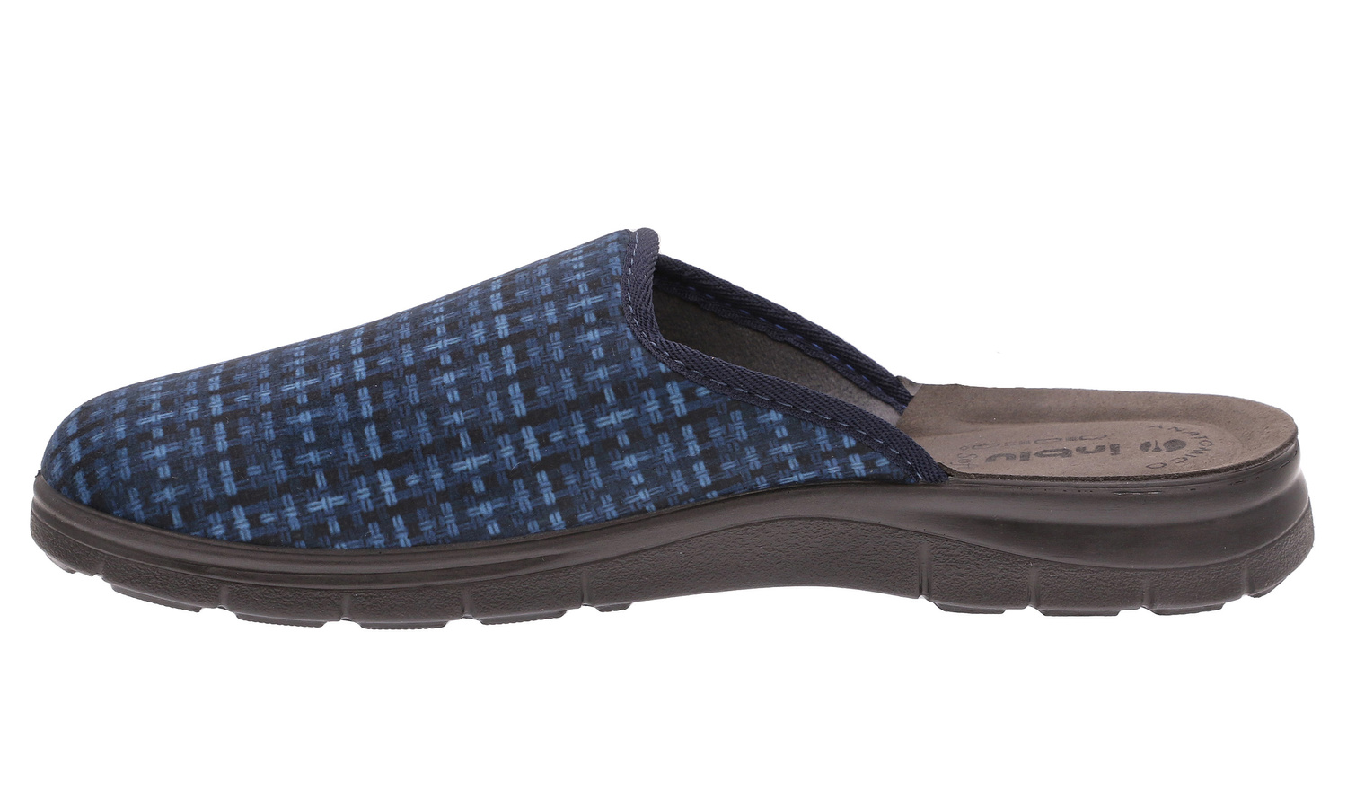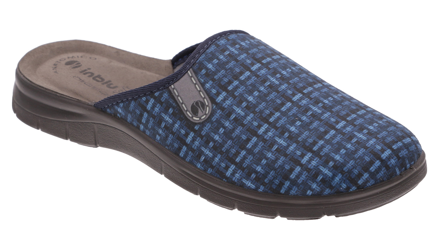 INBLU Sklep - polskie obuwie. Obuwie domowe męskie IN-BG-61 produkcji polskiej o charakterze rekreacyjnym wykonane z ekologicznego materiału tekstylnego, welur. Wnętrze wyłożone miękkim materiałem tekstylnym dobrze przepuszcza powietrze i zapewnia wysoki komfort. Wkładka wewnętrzna profilowana, wykonana z miękkiej naturalnej skóry. Spód plastycznie profilowany wykonany z lekkiego i elastycznego tworzywa - poliuretanu idealnie dopasowany do kształtu anatomicznego stopy, zapewnia sprężystość i bardzo dobre przenoszenie obciążeń na podłoże. Użyte materiały i zastosowana technologia zapewnia wysoki komfort użytkowania i wygodę. Obuwie domowe INBLU jest szczególnie polecane dla osób o stopach wrażliwych lub alergicznych.