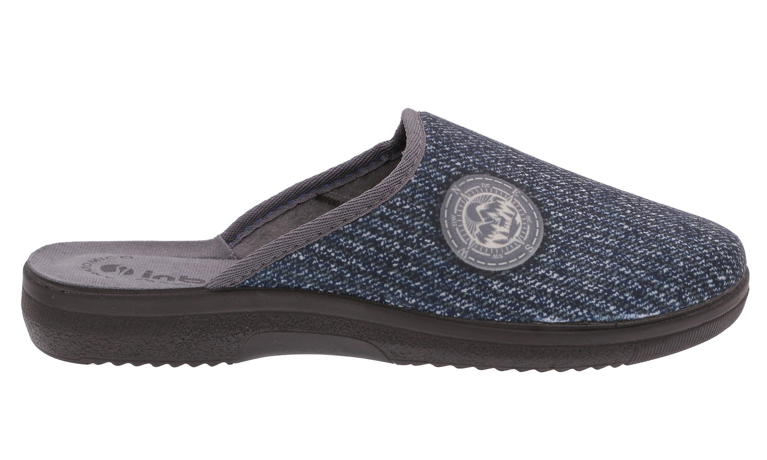 INBLU sklep - polskie obuwie. Kapcie męskie obuwie domowe IN-DG-16 produkcji polskiej o charakterze rekreacyjnym wykonane z ekologicznego materiału tekstylnego. Wnętrze wyłożone miękkim materiałem tekstylnym dobrze przepuszcza powietrze i zapewnia wysoki komfort. Wkładka wewnętrzna profilowana, wykonana z miękkiego materiału tekstylnego. Spód plastycznie profilowany wykonany z lekkiego i elastycznego tworzywa - poliuretanu idealnie dopasowany do kształtu anatomicznego stopy, zapewnia sprężystość i bardzo dobre przenoszenie obciążeń na podłoże. Użyte materiały i zastosowana technologia zapewnia wysoki komfort użytkowania i wygodę. Obuwie domowe INBLU jest szczególnie polecane dla osób o stopach wrażliwych lub alergicznych.