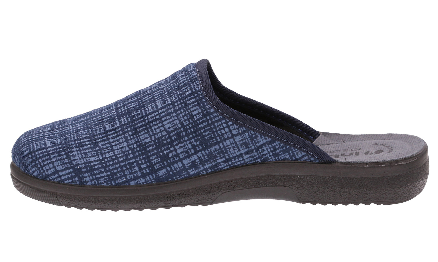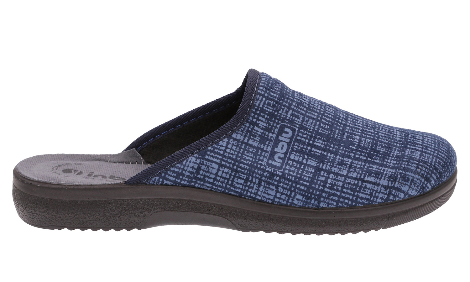 INBLU sklep - polskie obuwie. Kapcie męskie obuwie domowe IN-DG-18 produkcji polskiej o charakterze rekreacyjnym wykonane z ekologicznego materiału tekstylnego. Wnętrze wyłożone miękkim materiałem tekstylnym dobrze przepuszcza powietrze i zapewnia wysoki komfort. Wkładka wewnętrzna profilowana, wykonana z miękkiego materiału tekstylnego. Spód plastycznie profilowany wykonany z lekkiego i elastycznego tworzywa - poliuretanu idealnie dopasowany do kształtu anatomicznego stopy, zapewnia sprężystość i bardzo dobre przenoszenie obciążeń na podłoże. Użyte materiały i zastosowana technologia zapewnia wysoki komfort użytkowania i wygodę. Obuwie domowe INBLU jest szczególnie polecane dla osób o stopach wrażliwych lub alergicznych.