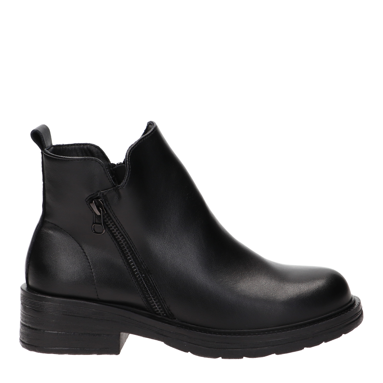 JEZZI Obuwie damskie botki z kolekcji JESIEŃ/ZIMA wykonane w całości ze skóry naturalnej zapewniającej najwyższy komfort użytkowania. Wierzch podwyższony, wykonany z atestowanej skóry odpornej na uszkodzenia mechaniczne, zapewniającej bardzo dobrą przepuszczalność powietrza oraz wygodę i komfort. Wnętrze lekko ocieplone materiałem tekstylnym dobrze dopasowującym się do kształtu anatomicznego stopy. Wkładka wewnętrzna lekko ocieplona, zapewnia doskonały komfort i wygodę. Spód wykonany z bardzo lekkiego i elastycznego tworzywa TR, odpornego na uszkodzenia mechaniczne, zapewnia bardzo dobrą przyczepność do podłoża. Obuwie przeznaczone do codziennego użytku, ogólnego przeznaczenia.