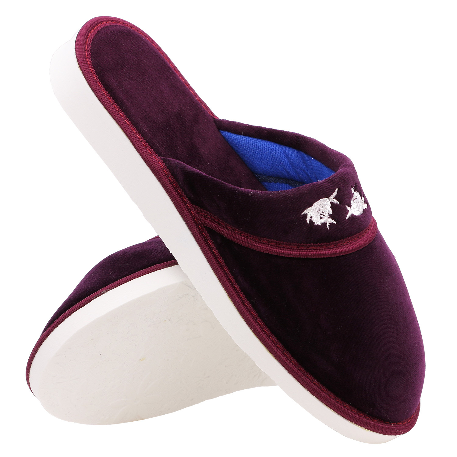 Postaw na komfort i elegancję w domowym wydaniu z kapciami Natural Style. Wykonane z miękkiego weluru w głębokim odcieniu granatu, zachwycają subtelnym haftem w białym kolorze, który nadaje im wyjątkowego charakteru.