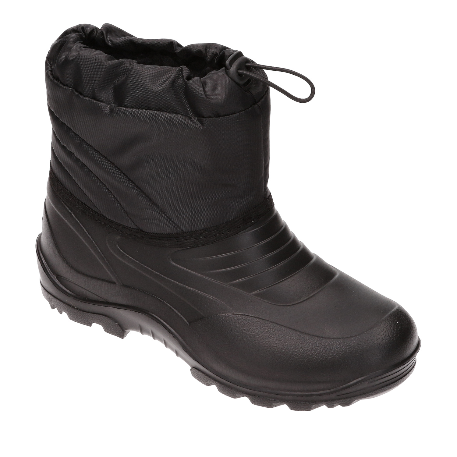 REALPAKS Obuwie męskie, śniegowce wykonane z pianki EVA oraz impregnowanego materiału tekstylnego, idealnie chroni stopy przed wilgocią, przemoczeniem i zimnem. Obuwie posiada właściwości antybakteryjne i przeciwgrzybicze. Obuwie wyróżnia się bardzo małą wagą z uwagi na rodzaj zastosowanych materiałów. Podszewka wykonana z futra syntetycznego. Obuwie przeznaczone do użytku w warunkach zimowych, deszczowych, idealnie izoluje i chroni stopy zapewniając poczucie komfortu i ciepła. Śniegowce posiadają ściągacz u góry cholewki.