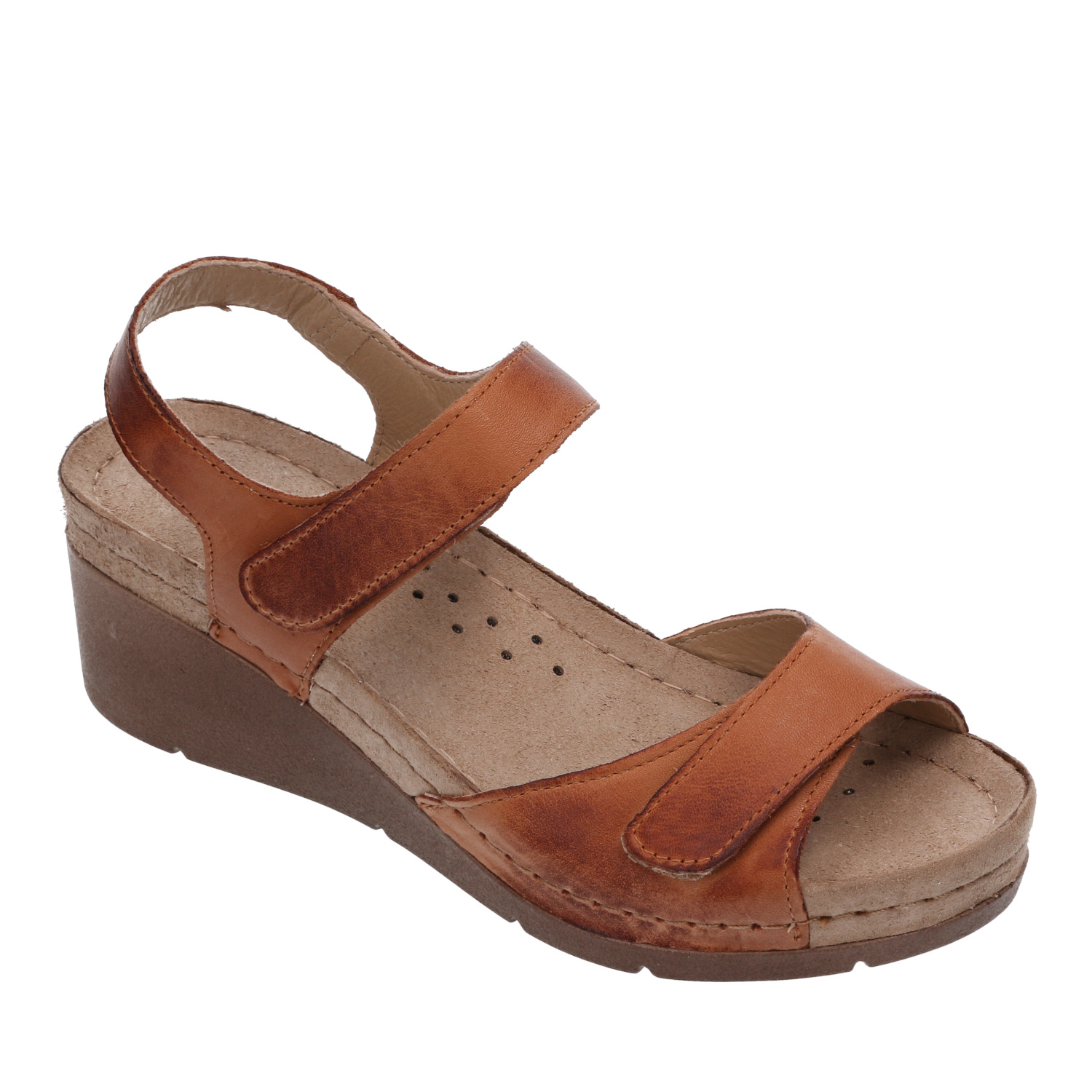 Leon 1041 to eleganckie, damskie, antypoślizgowe buty typu sandał z anatomicznie wyprofilowaną żelową wkładką. Cholewka wykonana jest ze skóry naturalnej, a przód i tył są regulowane za pomocą rzepów. Dzięki dużej ilości miejsca na palce, buty te są odpowiednie również dla osób z haluksami.
