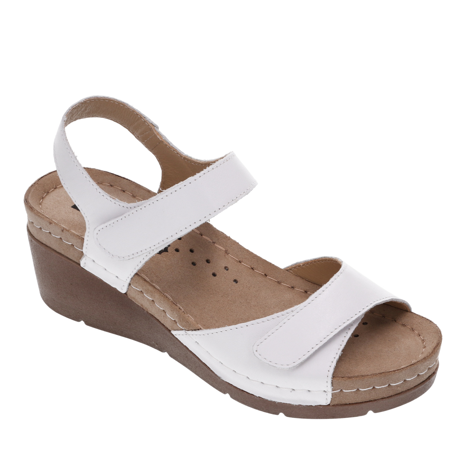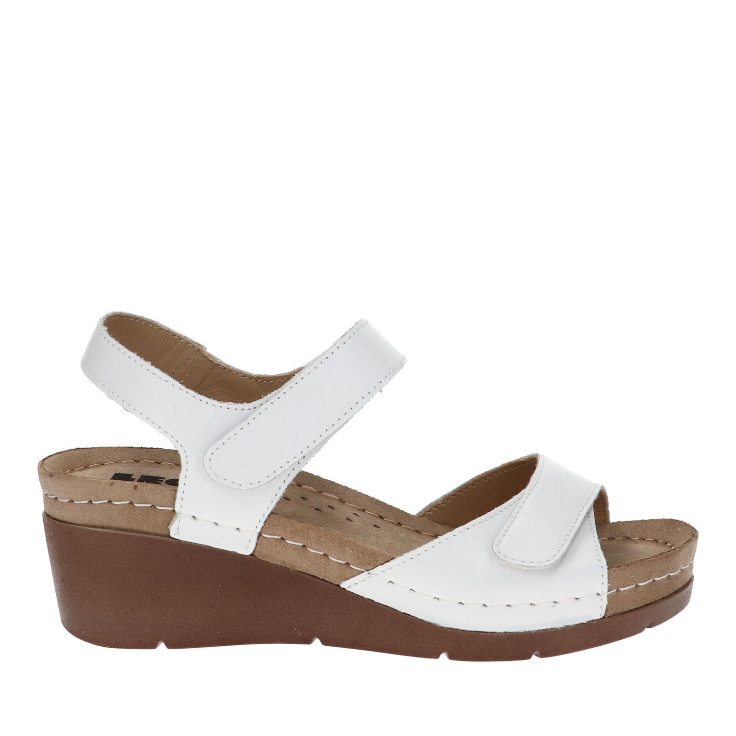 Leon 1041 to eleganckie, damskie, antypoślizgowe buty typu sandał z anatomicznie wyprofilowaną żelową wkładką. Cholewka wykonana jest ze skóry naturalnej, a przód i tył są regulowane za pomocą rzepów. Dzięki dużej ilości miejsca na palce, buty te są odpowiednie również dla osób z haluksami.