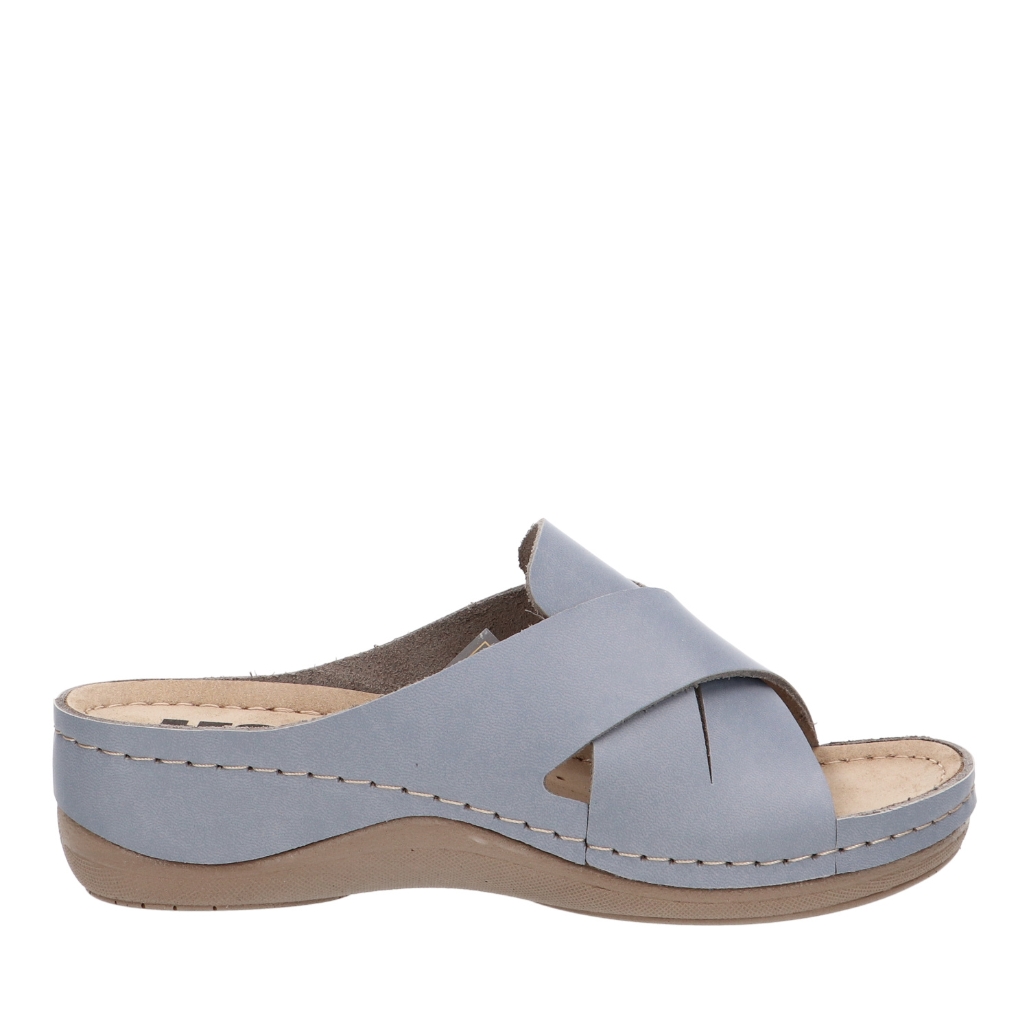 Damskie, skórzane, antypoślizgowe klapki Leon 932 z anatomicznie wyprofilowaną żelową wkładką, której górna część pokryta jest miękką skórą. Żelowa wkładka amortyzuje wstrząsy podczas chodzenia i pomaga w prawidłowym rozłożeniu ciężaru na stopie. Cholewka w całości wykonana jest z wysokiej jakości naturalnej skóry bydlęcej. Buty o nowoczesnym designie sprawdzą się zarówno w czasie wolnym, jak i w pracy. Są lekkie i bardzo wygodne. Za świetną cenę otrzymasz niezwykle wygodne i wysokiej jakości buty, które chronią kręgosłup przy każdym kroku.